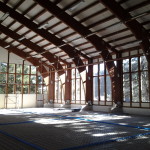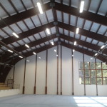 Realizzazione di impianto sportivo Polivalente con struttura portante e copertura interamente in legno lamellare cosi come i tompagni di chiusura quest’ultimi opportunamente coibentati e rifiniti sulla facciata esterna con il sistema “cappotto” per meglio rispondere alle normative vigenti in materia di termoregolazione degli ambienti.